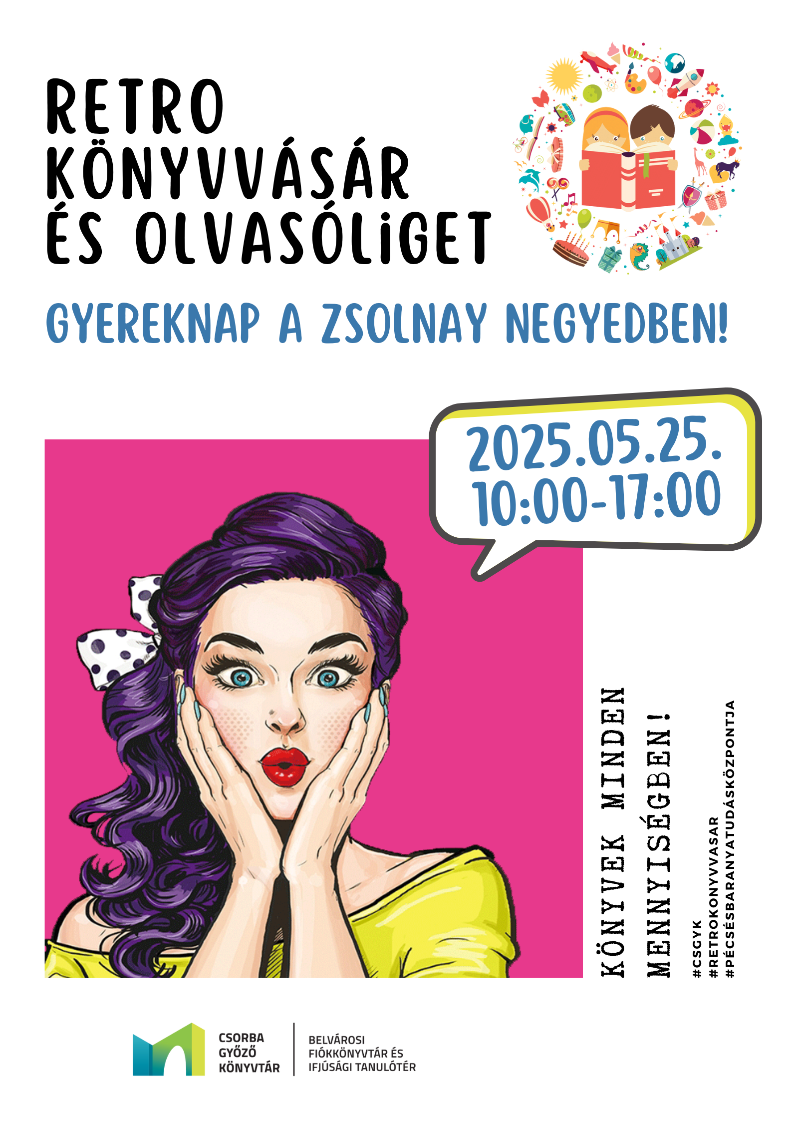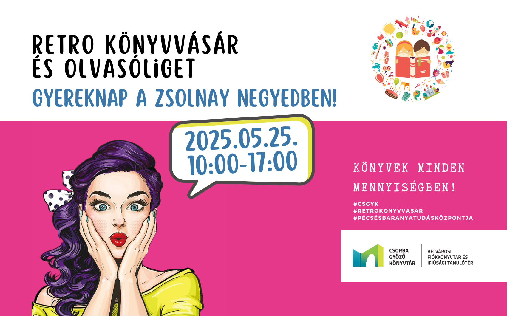 Szeretne egy új könyvet? Régóta keres egy bakelit lemezt? Ritkaságokra vágyik? Várja Önt a Retro könyvvásár és Olvasóliget, mely a Csorba Győző Könyvtár Belvárosi Fiókkönyvtár és Ifjúsági Tanulótér udvarából a Zsolnay Negyedbe költözik gyereknapon!