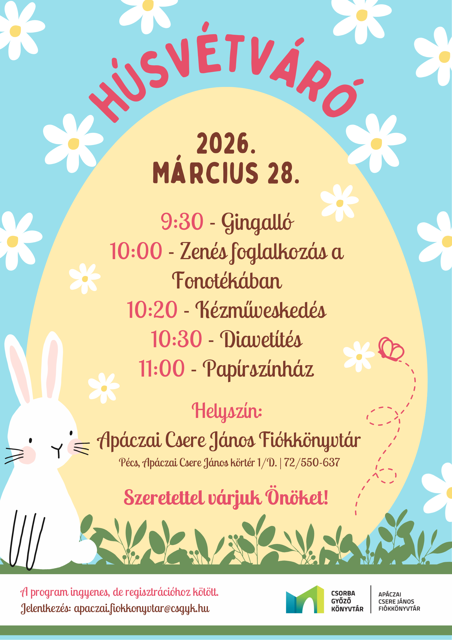 Szeretettel várunk minden érdeklődőt Húsvétváró szombatunkra az Apáczai Csere János Fiókkönyvtárban.