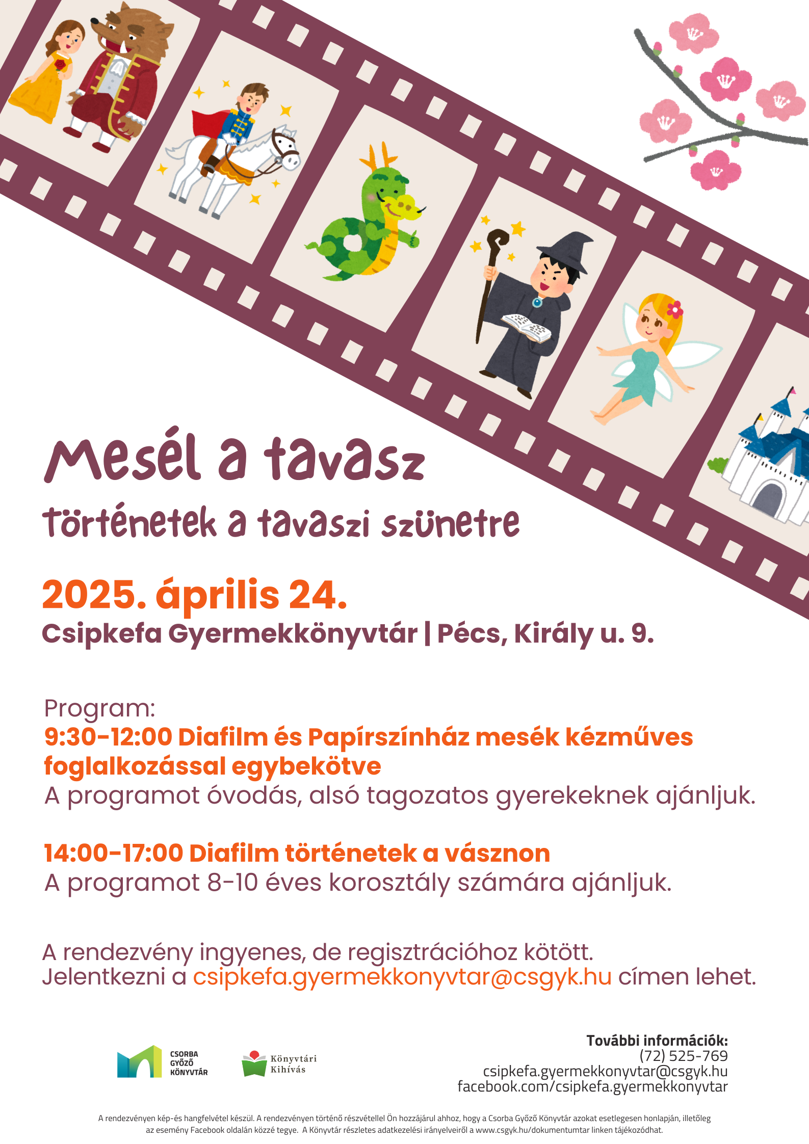 A tavaszi szünetben is mesés programmal várjuk a családokat a Csipkefa Gyermekkönyvtárban.