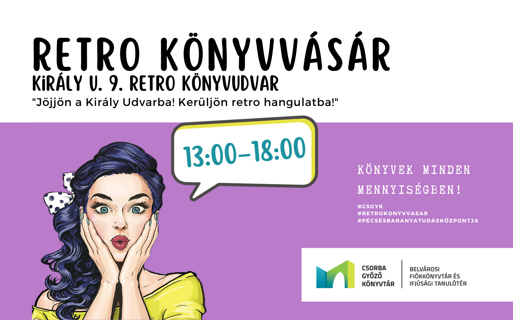 Helyszín: Belvárosi Fiókkönyvtár és Ifjúsági Tanuló Tér, Retro könyvudvar (Pécs, Király u. 9.)