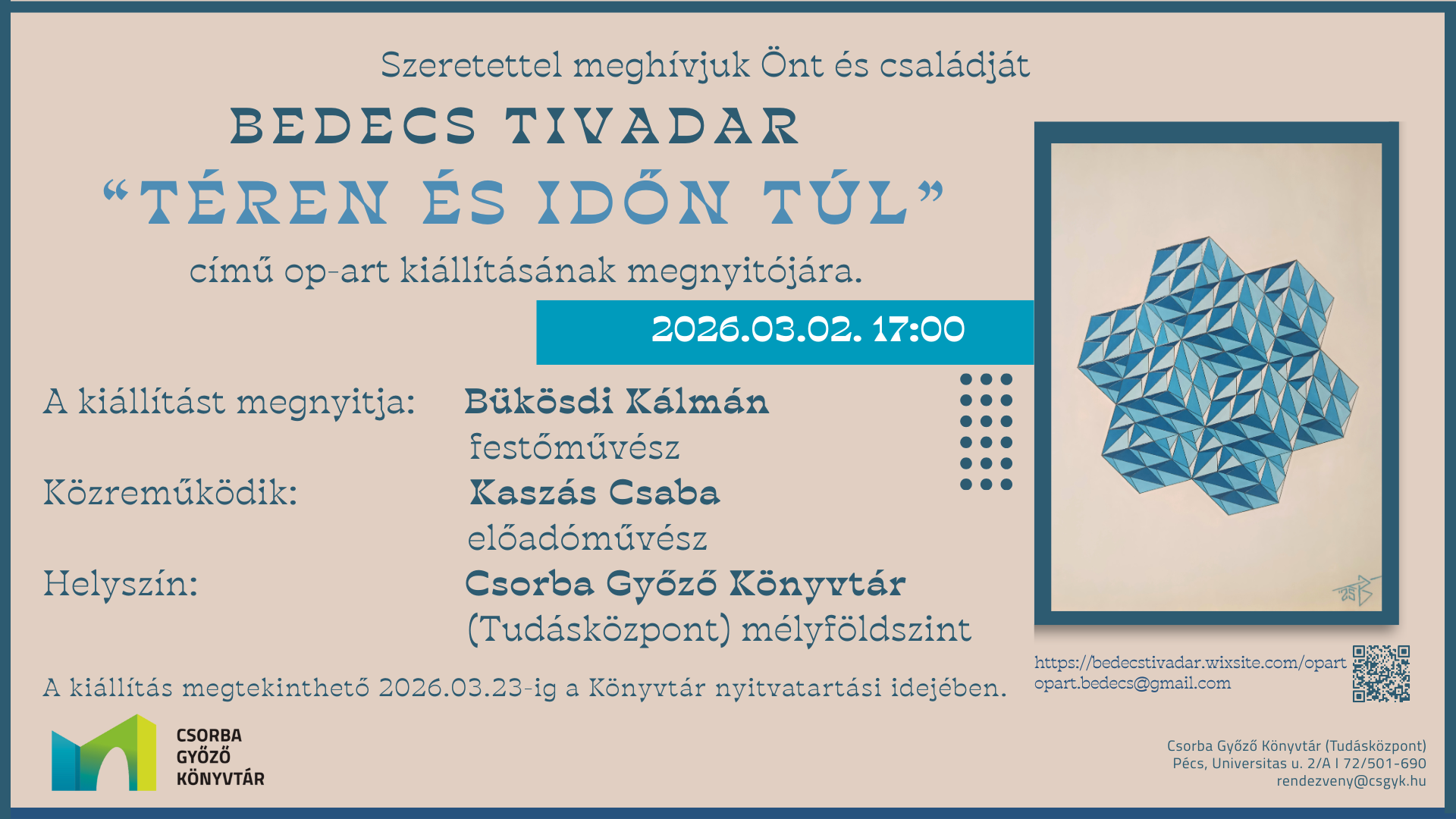 A kiállítás megtekinthető március 23-ig a könyvtár nyitvatartási idejében a Tudásközpont mélyföldszintjén.