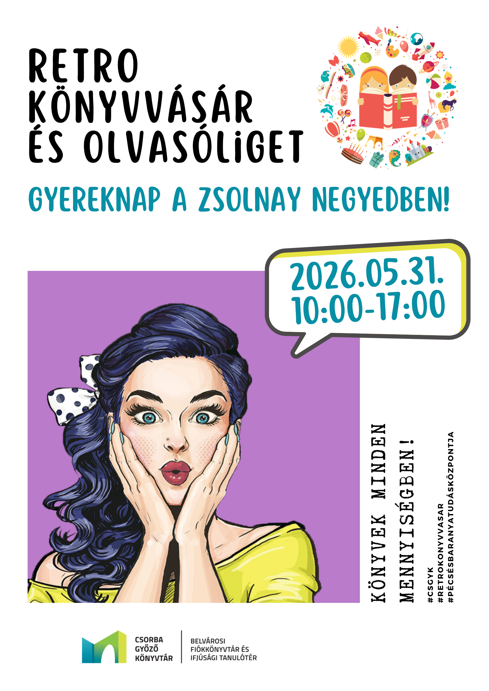 Szeretne egy új könyvet? Régóta keres egy bakelit lemezt? Ritkaságokra vágyik? Várja Önt a Retro könyvvásár és Olvasóliget, mely a Csorba Győző Könyvtár Belvárosi Fiókkönyvtár és Ifjúsági Tanulótér udvarából a Zsolnay Negyedbe költözik gyereknapon!