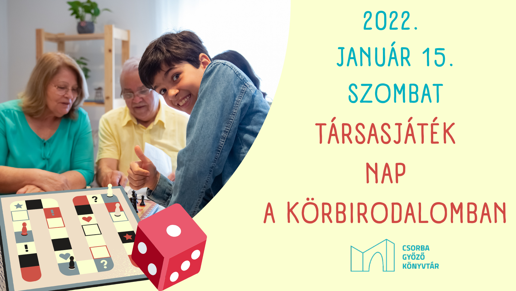 2022. Január 15-én szombaton 10 és 18 óra között a Körbirodalom Gyermekkönyvtár Foglalkoztató termében lehetővé tesszük a könyvtárunk gyűjteményében lévő társasjátékok helyben használatát. A termet egy család vagy baráti társaság 2 órára foglalhatja le, amennyiben előzetesen regisztrálta magát a korbirodalomatcsgyk [dot] hu e-mail címen.