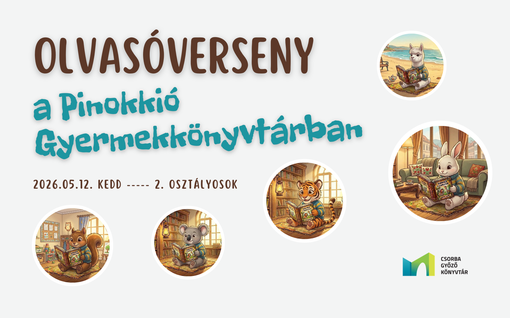 A Csorba Győző Könyvtár Várkonyi Nándor Fiókkönyvtár és Pinokkió Gyermekkönyvtára olvasóversenyt hirdet alsó tagozatos általános iskolásoknak 2026. május 11–14. között. A versenyen néhány perces – helyben kapott – ismeretlen szöveget kell a gyermekeknek minél kifejezőbben és minél kevesebb hibával felolvasniuk felkészülési idő nélkül.