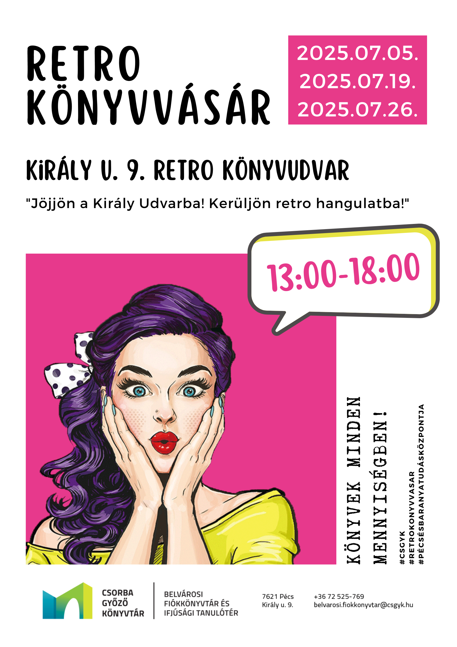 Helyszín: Belvárosi Fiókkönyvtár és Ifjúsági Tanuló Tér, Retro könyvudvar (Pécs, Király u. 9.)